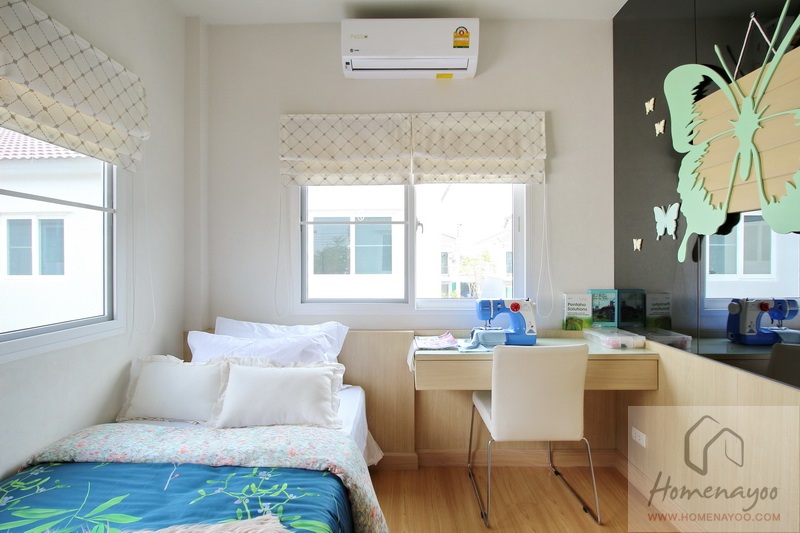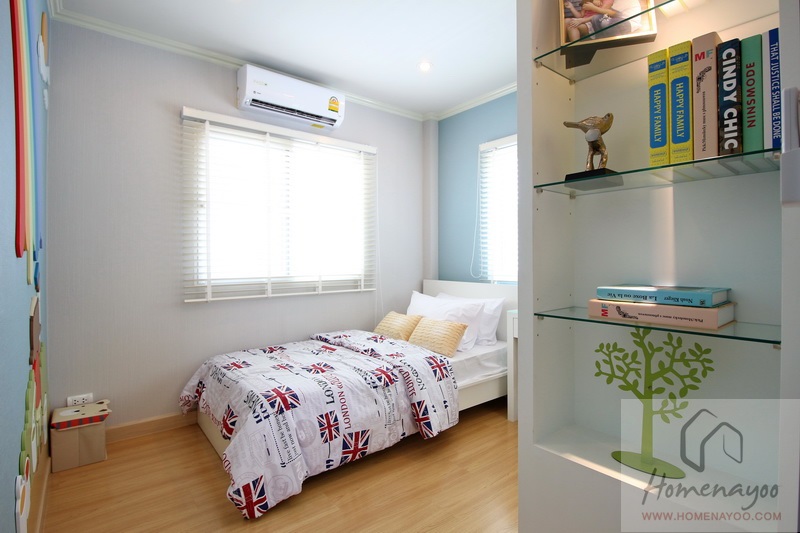 เข้ามาด้านในห้องนอน 3 เป็นห้องนอนขนาดเล็กที่สุดของบ้าน บ้านตัวอย่างตกแต่งเป็นห้องนอนเด็กให้ดูเป็นไอเดีย สามารถวางเตียงนอน 3.5 ฟุต และ เฟอร์นิเจอร์มาตรฐานได้เช่นเดียวกัน สำหรับบ้านไหนที่เป็นครอบครัวเริ่มต้น ยังไม่มีเด็ก ๆ สามารถปรับเปลี่ยนเป็นห้องทำงาน, ห้องแต่งตัว หรือจะปรับเปลี่ยนการใช้งานเป็นห้องอื่น ๆ ก็ได้ตามความต้องการ