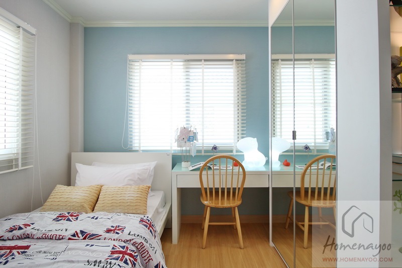 ข้างเตียงนอนมีพื้นที่เหลือกว้าง ๆ สามารถจัดวางโต๊ะทำงานเข้าไปได้