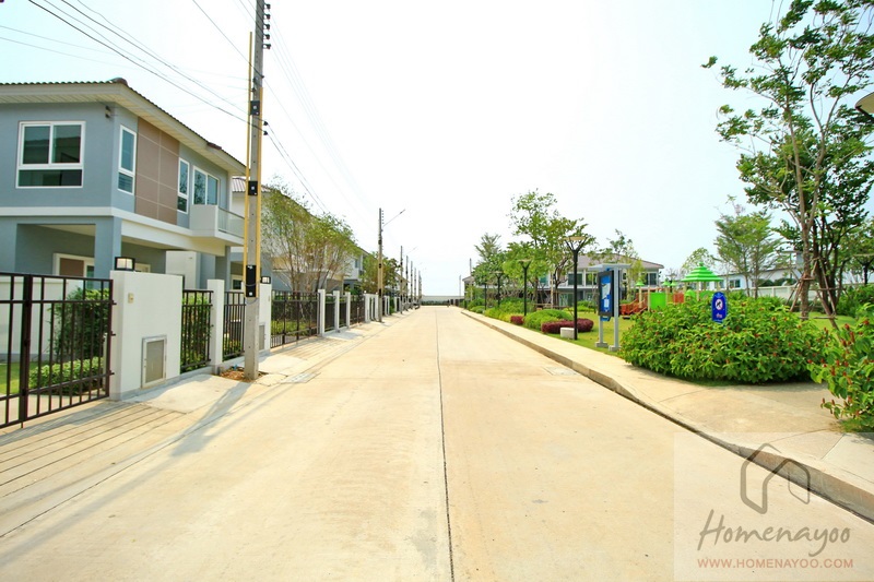 ♦ สิ่งอำนวยความสะดวก : มีสวนสาธารณะขนาดใหญ่เอาไว้ให้ตรงกลางโครงการ ให้ลูกบ้านเดินมาใช้งานได้อย่างสะดวกทั่งถึงกัน ภายในสวนจะมีทั้งพื้นที่นั่งเล่น, สนามเด็กเล่น พร้อมเครื่องเล่นสนาม และ Jogging Track ตกแต่งสวนโดยการกระจายต้นไม้พุ่ม, ไม้ประดับ และ ต้นไม้ใหญ่ มีการจัดสวนหย่อมตามซอยย่อยต่าง ๆ เอาไว้ให้ ตั้งแต่ด้านหน้าโครงการ จนถึงด้านในโครงการ เพิ่มบรรยากาศร่มรื่น ส่วนถนนเมนโครงการกว้าง 12 เมตร, ถนนซอยกว้าง 8 เมตร ระบบรักษาความปลอดภัยมาตรฐาน ควบคุมการเข้าออกด้วยระบบ Easy Pass, ติดตั้งกล้องวงจรปิด (CCTV) ที่ทางเข้า-ออก ฝั่งละ 1 ตัว พร้อมเจ้าหน้าที่รักษาความปลอดภัยอย่างเข้มงวดตลอด 24 ชม. ค่ะ