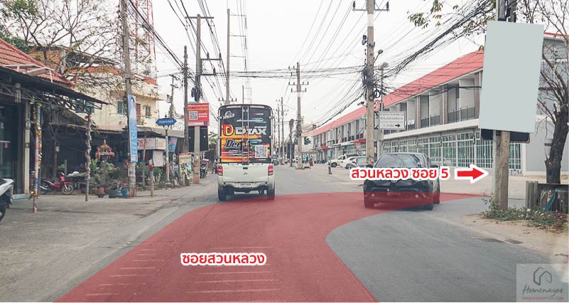 จากนั้นเลี้ยวเข้าซอยสวนหลวง ตรงเข้าไปประมาณ 800 ม.* ให้เลี้ยวขวาเข้า สวนหลวง ซอย 5 ตรงเข้าไปอีกประมาณ 250 ม.* จะเจอโครงการทางขวามือ