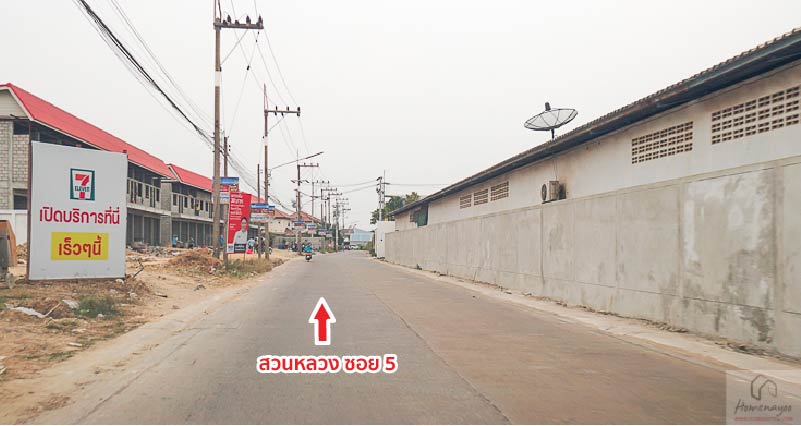 จากปากซอยเข้ามา ประมาณ 800 ม.* ให้เลี้ยวขวาเข้า สวนหลวง ซอย 5