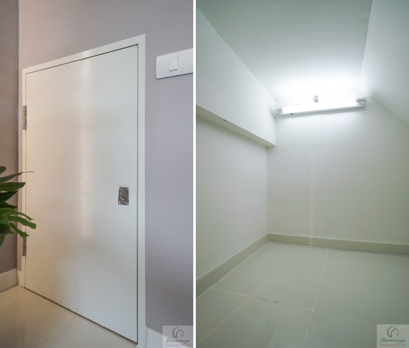 มุมใต้บันไดบ้านเป็นห้องเก็บของ ภายในมีพื้นที่เก็บของได้พอประมาณ
