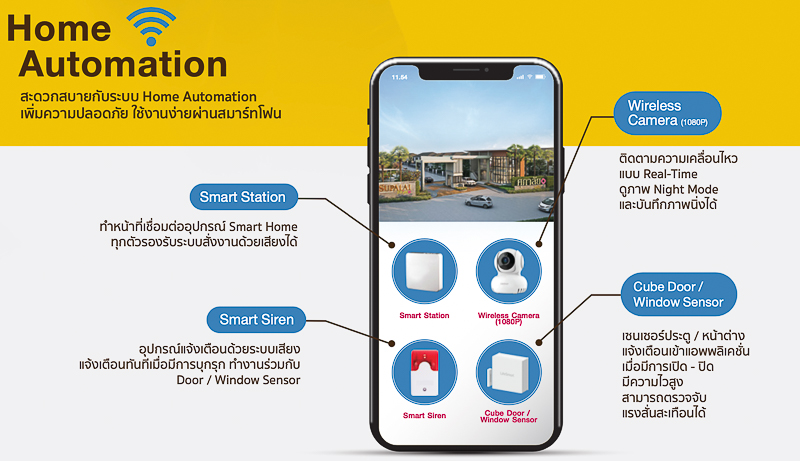 ระยะดูทีวีจากโซฟาประมาณ 3 ม. ติดทีวีจอขนาด 55-65 นิ้วได้สบาย ๆ ที่ชั้นล่างติดตั้ง Wireless Camera มาให้ 1 ตัว