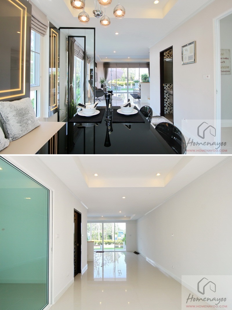 สิ่งที่ลูกค้าจะได้รับเป็นบ้านเปล่า พื้นแกรนิตโต้ชั้นล่าง ชั้นบนไม้ลามิเนตสีอ่อน บันไดโครงสร้างคสล. แข็งแรง หน้าบันไดไม้ยาง ผนังฉาบเรียบทาสีพื้น ส่วนฝ้าเพดานมีทั้งส่วนที่ฉาบเรียบ และดรอปฝ้า ไฟภายในบ้านแบบดาวน์ไลท์ แสงวอร์มไวท์ ให้ความรู้สึกอบอุ่น