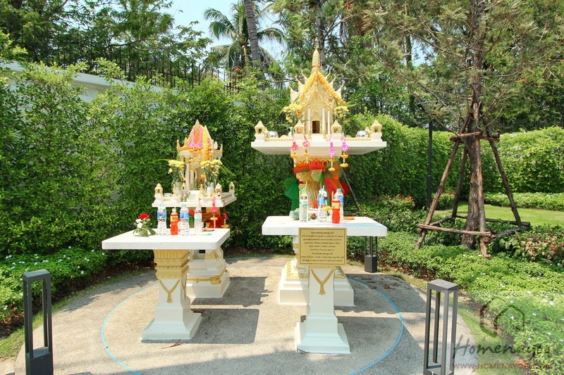 ติดกับที่จอดรถเป็นสวนหย่อม และศาลพระภูมิของโครงการ