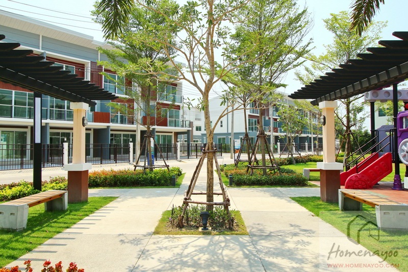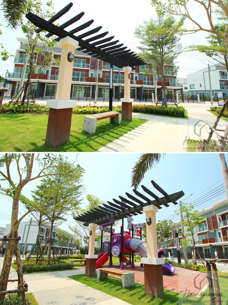 ⇒ สาธารณูปโภค : เน้นเป็นสวนสาธารณะส่วนกลาง โดยพื้นที่สวนพักผ่อน ก็ได้มาขนาดปานกลาง ไม่เล็ก ไม่ใหญ่โตจนเกินไป มีทางเดินในสวน, มุมพักผ่อน และ เครื่องเล่นสนามของเด็กๆ นอกจากพื้นที่สวนพักผ่อนด้านหน้าแล้ว โครงการยังกระจายพื้นที่สวนไว้ตามซอยต่างๆ มีการลงต้นไม้ และ ปูหญ้าสนามตลอดทางเท้า ทำให้บรรยากาศภายในโครงการ ร่มรื่น เหมาะแก่การพักผ่อน