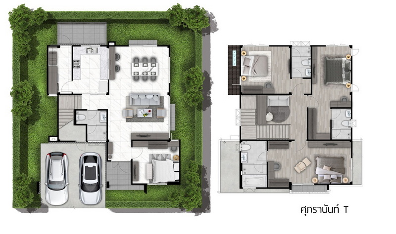• ขนาด 4 ห้องนอน 4 ห้องน้ำ 2 พื้นที่พักผ่อน ที่จอดรถ 2 คัน