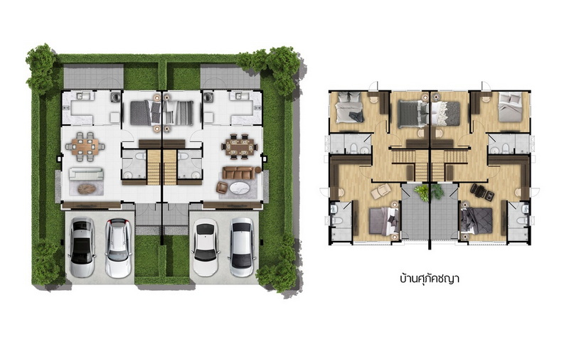 • แบบบ้าน ศุภัคชญา บ้านแฝด 2 ชั้น พื้นที่ใช้สอย 163 ตร.ม. ขนาด 4 ห้องนอน 3 ห้องน้ำ ที่จอดรถ 2 คัน