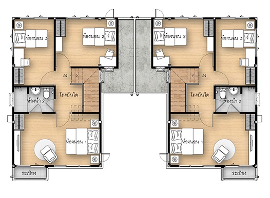 • แบบบ้านศุภชีวัน | ทาวน์โฮม 2 ชั้น