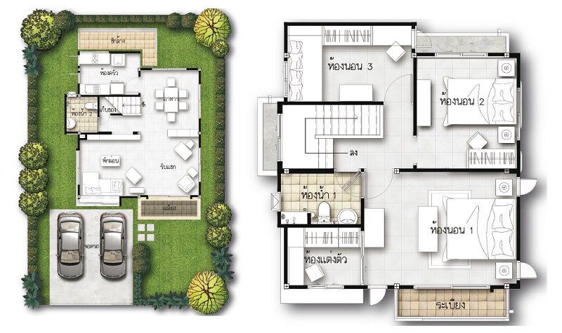 แปลนบ้านชั้น 1 | แปลนบ้านชั้น 2
