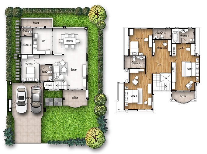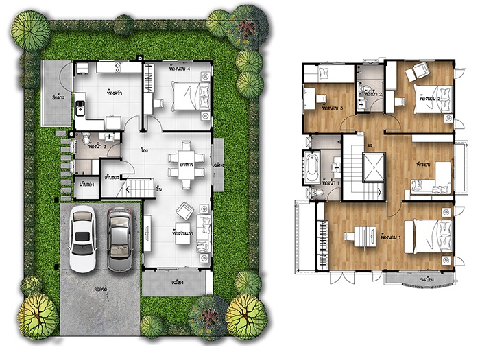 แปลนบ้านชั้น 1 | แปลนบ้านชั้น 2