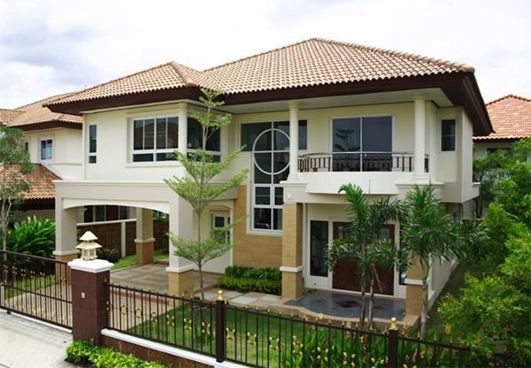 – บ้านที่ลงตัวสำหรับครอบครัวขนาดกลาง ด้านหน้าถูกออกแบบให้มีรูปลักษณ์ทันสมัย ตามแบบ Oriental Style สวยงามด้วยมุขหลังคาและ Bay Window