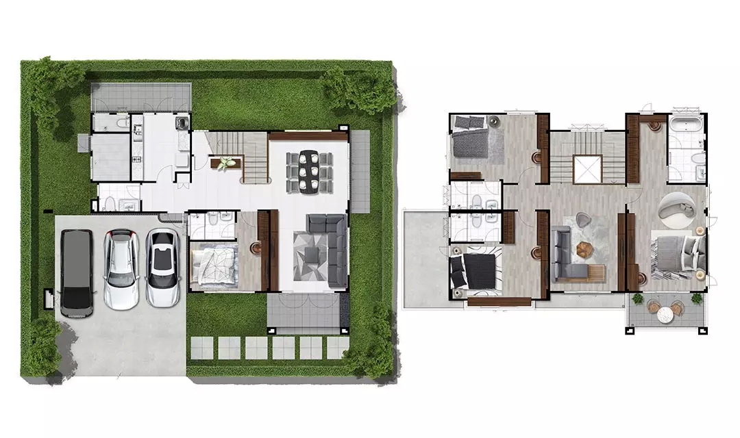 แปลนบ้านชั้น 1 | แปลนบ้านชั้น 2