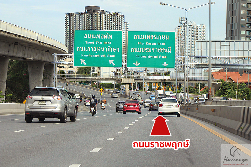 พอลงทางต่างระดับมาให้ชิดซ้าย เราจะเลี้ยวซ้ายเข้าสู่ถนนเพชรเกษม มุ่งหน้าไปบางแค