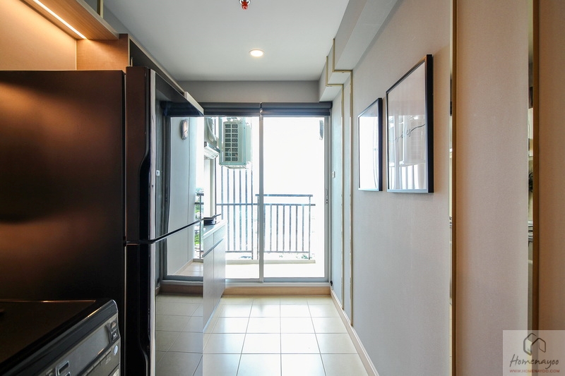อีกฝั่งจะเป็นพื้นที่สำหรับวางตู้เย็น 8-15 คิว และ เครื่องซักผ้าฝาหน้า หรือ ฝาบน ขนาด 7-10 กก. ได้เลย โดยจุดนี้ทางโครงการจะเดินงานระบบไฟฟ้า และ ระบบประปามาให้เรียบร้อยแล้วค่ะ