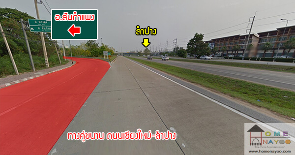 จากนั้นวิ่งตาม ทางคู่ขนานถนนเชียงใหม่-ลำปาง (ผ่านซ้ายมือ โครงการบ้านเดี่ยว ดิเออบาน่า+3)