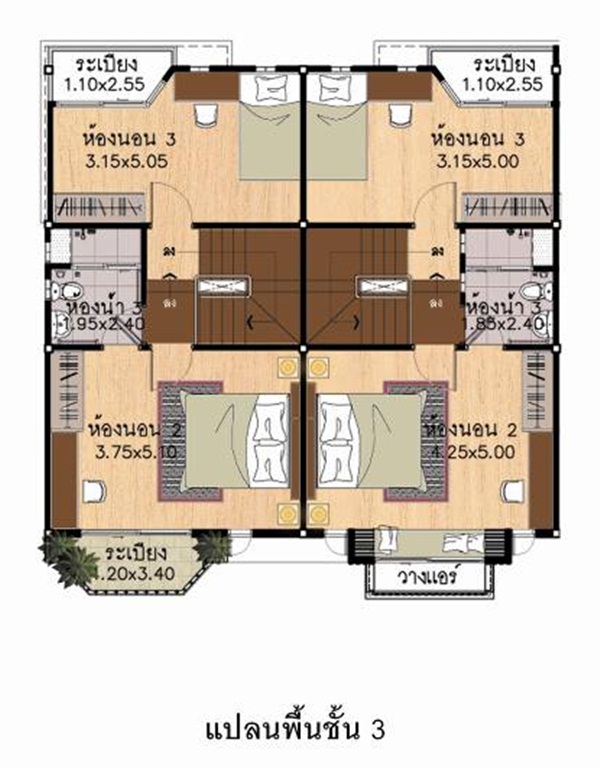 จำนวนห้อง  3 ห้องนอน / 2-3 ห้องน้ำ