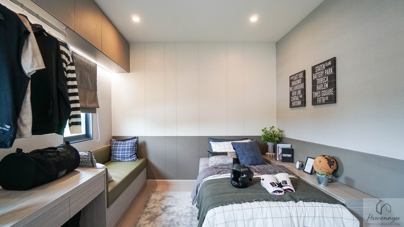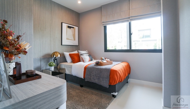 หากจะทำเป็นห้องนอนก็เหมาะวางเตียงนอนขนาด 3.5-5 ฟุต รอบ ๆ เตียงมีพื้นที่เหลือให้ทำความสะอาด เปลี่ยนผ้าปูที่นอน และเดินเข้า-ออกได้สะดวก