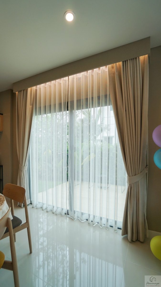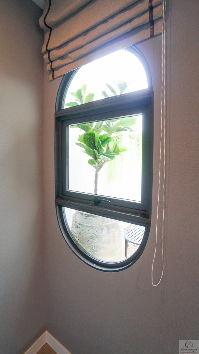 ได้หน้าต่างกระจกบานเลื่อนขนาดใหญ่ติดเข้ามุม 2 บาน ช่วยให้ห้องดูโปร่งโล่งรับลมรับแสงได้ตลอดทั้งวัน