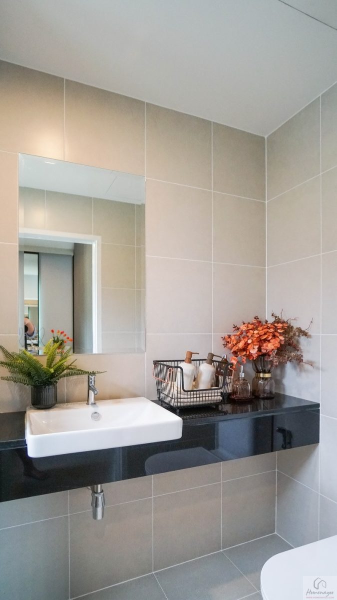 หน้าอ่างมีที่เหลือให้วางของใช้หรือของตกแต่งอื่น ๆ ได้อีกนิดหน่อย