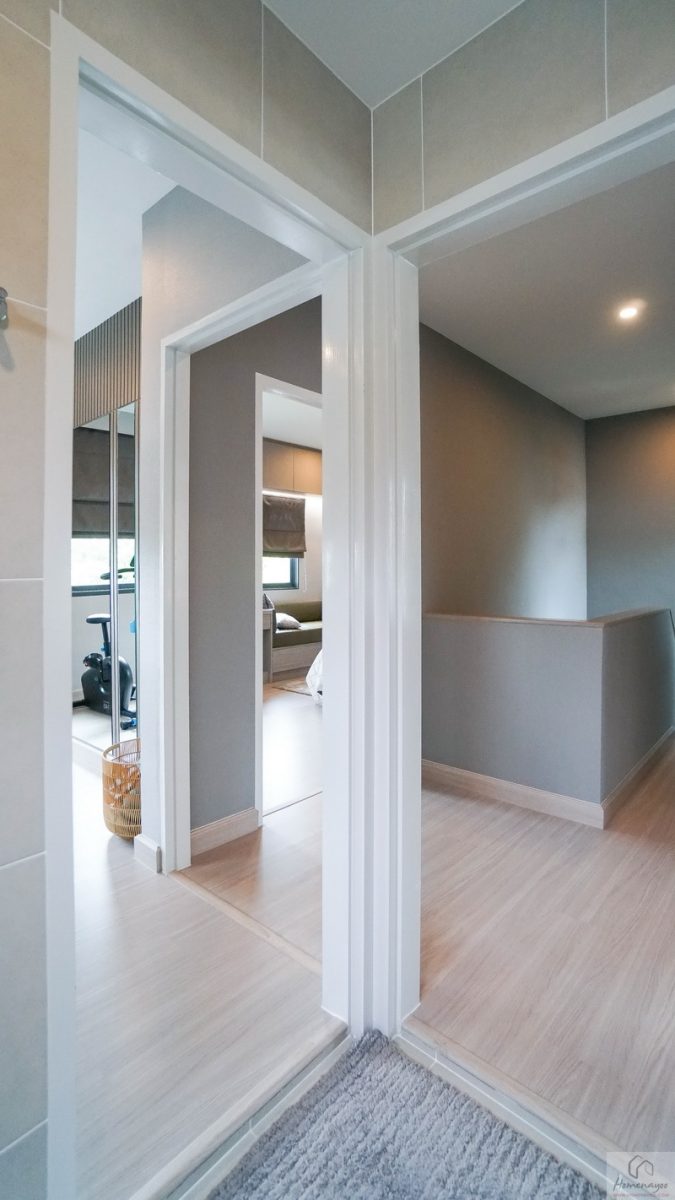 ขึ้นไปดูชั้น 2 ของบ้านกันต่อ โดยโถงบันไดจะอยู่ติดกับชั้นวางทีวีและห้องน้ำชั้นล่างเลยค่ะ