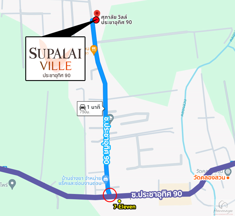 การเดินทางเริ่มจาก ถนนประชาอุทิศ ⇒ ซอยประชาอุทิศ 90 ⇒ Village Hub ประชาอุทิศ ⇒ วัดคลองสวน ⇒ ศุภาลัย วิลล์ ประชาอุทิศ 90
