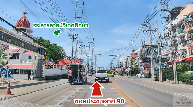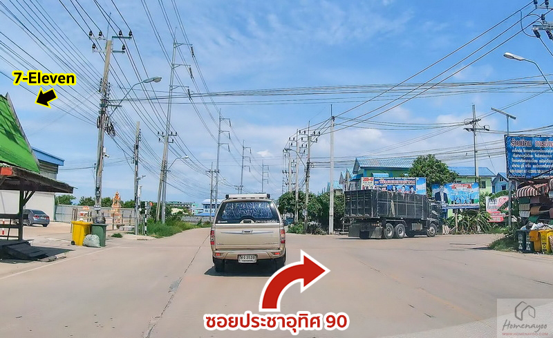 ขับตรงเรื่อย ๆ ภายในซอยประชาอุทิศ 90 ผ่าน Village Hub ประชาอุทิศ