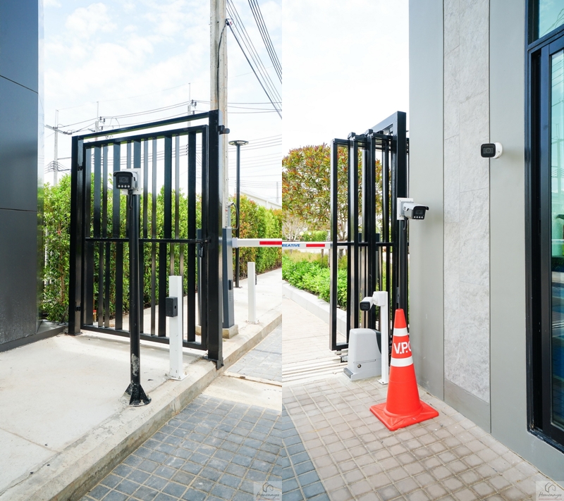 หน้าโครงการมี Main Gate ขนาดใหญ่สไตล์ Modern แยกทางเข้า-ออกรถยนต์ไว้ 2 ฝั่ง ด้านข้างมีทางเดินเท้ายาวเข้าไปด้านใน เข้า-ออกโครงการด้วยระบบอ่านป้ายทะเบียนที่แม่นยำ พร้อมติดตั้งกล้องวงจรปิด CCTV และมีเจ้าหน้าที่รักษาความปลอดภัยดูแลตลอด 24 ชม.