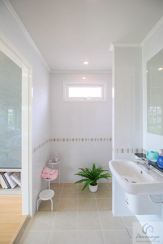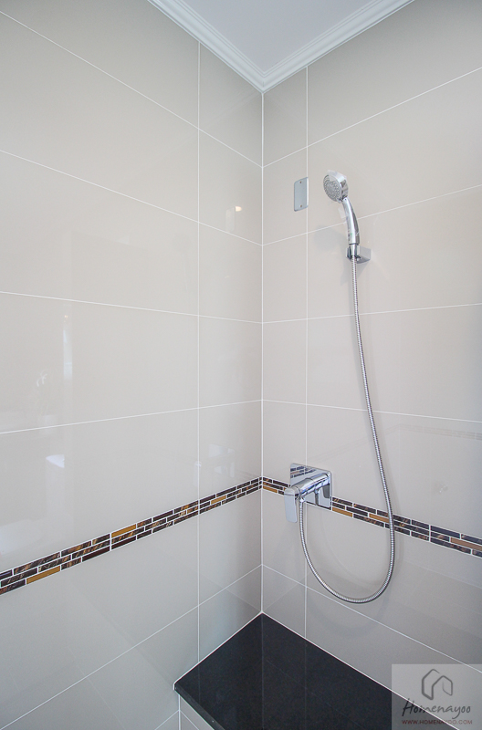 ด้านในเป็นพื้นที่ส่วนเปียก ติดตั้งฝักบัวมาให้เรียบร้อย