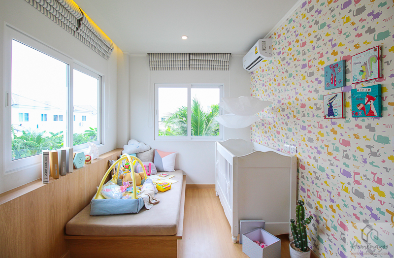 ภายในห้องนอน 3 มีพื้นที่มาให้พอประมาณ ตกแต่งเป็นห้องนอนเด็กมาให้ดู