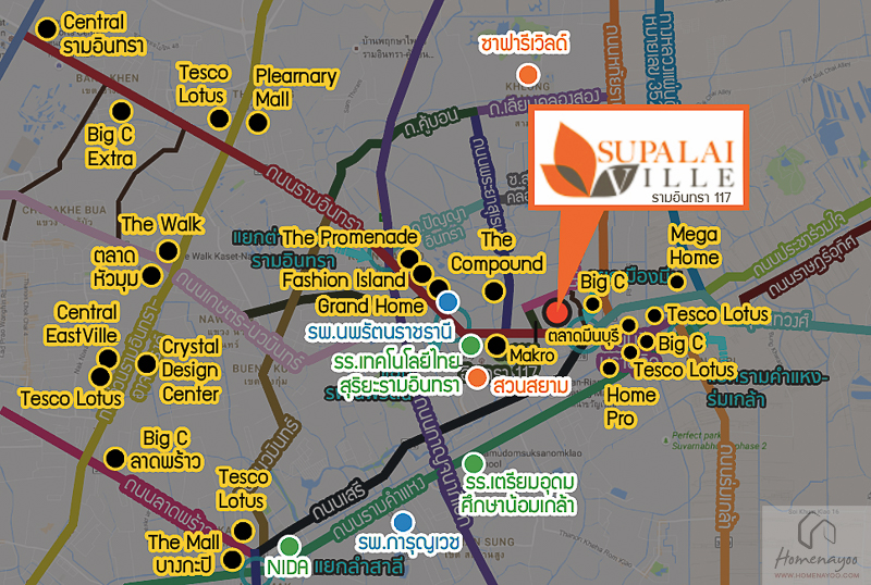 สวัสดีผู้อ่านชาว Homenayoo ทุกคน วันนี้ผมพามาชมโครงการ Supalai Ville รามอินทรา 117 จาก ศุภาลัย ตั้งอยู่ในซอยเจริญพัฒนาเป็นซอยที่เชื่อมเข้าออกได้ทั้งจากฝั่งถนนรามอินทรา(ซอยรามอินทรา 117) ถนนพระยาสุเรนทร์(ซอยพระยาสุเรนทร์ 30 และซอยสุเหร่าคลองหนึ่ง) ถนนหทัยราษฎร์(ซอยสุเหร่าคลองหนึ่ง) ใกล้ถนนกาญจนาภิเษก ใกล้รถไฟฟ้าสายสีชมพูสถานีบางชัน เพียง 3 สถานีถึงจุดเชื่อมต่อกับรถไฟฟ้าสายสีส้ม รายล้อมไปด้วยสิ่งอำนวยความสะดวกครบครันทั้ง Fashion Island, The Promenade, Big C, Tesco Lotus, Makro