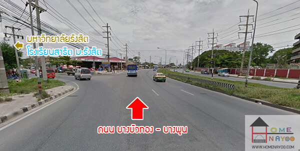 จากนั้นวิ่งตรงตาม ถนนบางบัวทอง – บางพูน (ผ่านซ้ายมือ มหาวิทยาลัยรังสิต, โรงเรียนสาธิต ม.รังสิต)