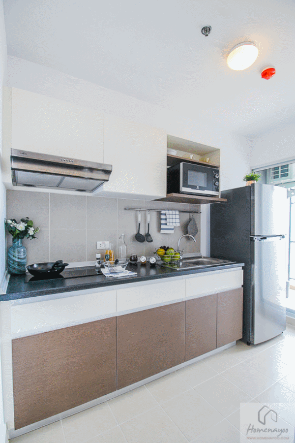 ภายในห้องครัวจะได้ชุดเคาน์เตอร์ครัวตามนี้เลย ได้อ่างล้างจาน แต่ไม่ได้ชุดเตาไฟฟ้านะครับ ขวามือมีพื้นที่ไว้ให้วางเครื่องซักผ้า เดินระบบน้ำและไฟไว้ให้ ด้านในมีหน้าต่างบานเลื่อน 2 บาน เปิดระบายอากาศได้