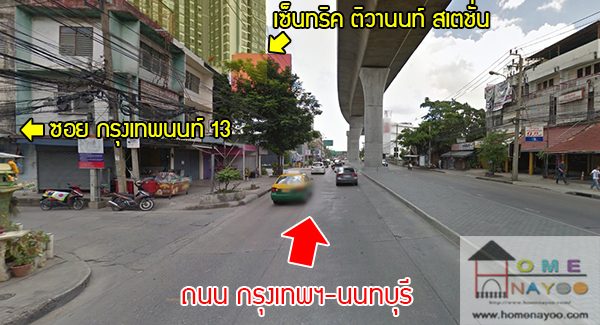 จากนั้นวิ่งตาม ถนน กรุงเทพ-นนทบุรี (ผ่าน ซอย กรุงเทพนนท์ 13) จากตรงนี้จะมองเห็นโครงการใกล้เคียง คอนโด เซ็นทริค ติวานนท์ สเตชั่น อยู่ทางซ้ายมือครับ