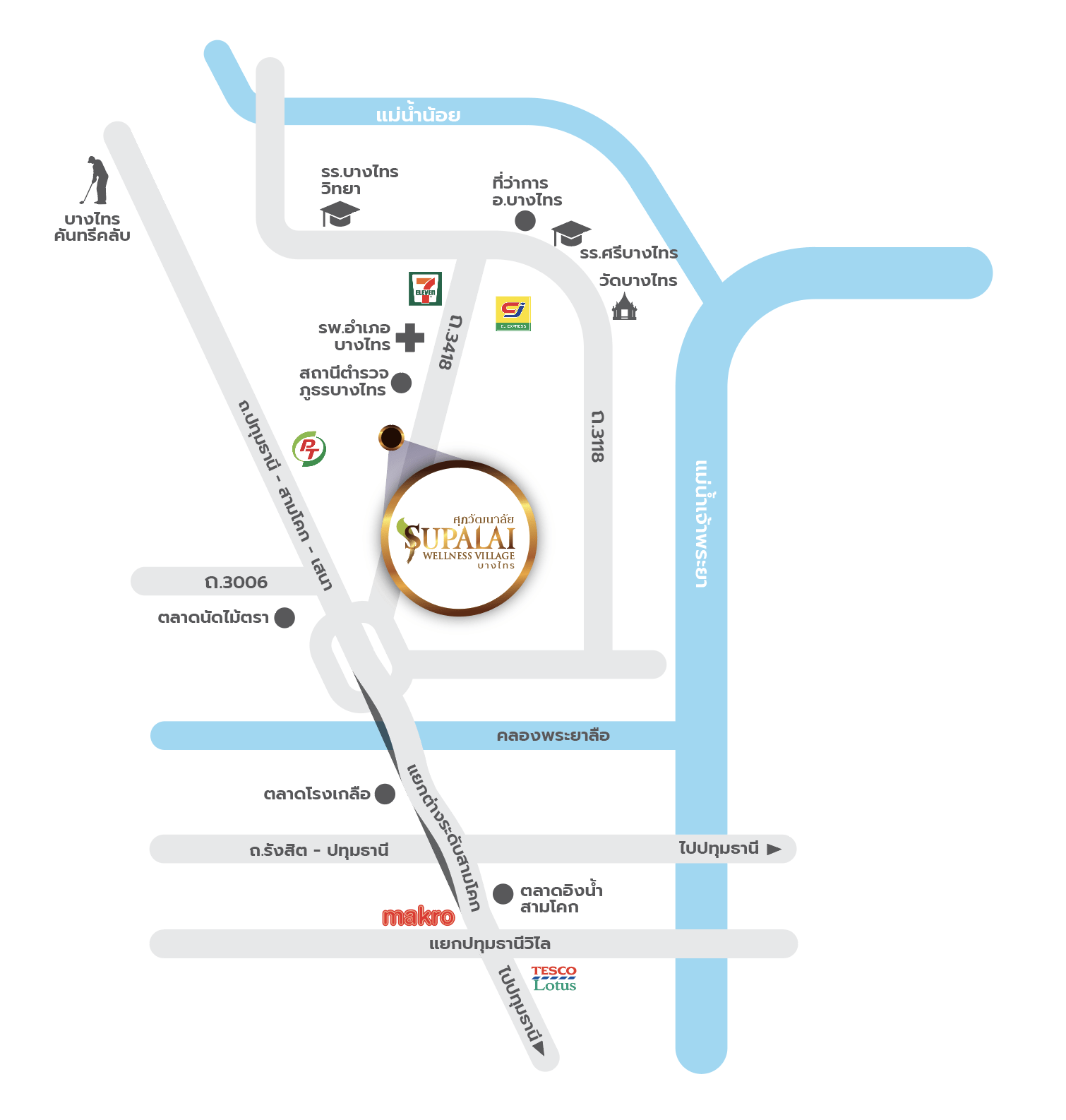 ใกล้ทางด่วนอุดรรัถยา รายล้อมไปด้วยแหล่งอำนวยความสะดวกทั้งตลาด ร้านค้า ร้านอาหาร ห่างจาก รพ.อำเภอบางไทร เพียง 550 ม.* และ สภ.บางไทร เพียง 700 ม.*