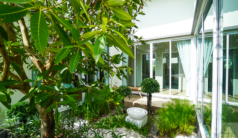 มองออกมาจะเห็นคอร์ทกลางบ้าน ที่สามารถตกแต่งสวนได้ตามต้องการ ฝั่งตรงข้ามจะเห็นส่วนห้อง Master Bedroom พอดี