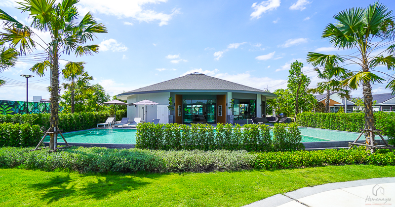 สระว่ายน้ำระบบน้ำแร่ยาว 19 ม. แยกสระเด็ก พร้อมพื้นที่พักผ่อนริมสระ เปิดรับวิวสวนบรรยากาศดี พร้อมห้องน้ำแยกชายหญิง มีสวนพักผ่อนขนาดใหญ่กว่า 1 ไร่ บรรยากาศร่มรื่น พร้อม Pavilion พื้นที่นั่งพักผ่อน และสนามเด็กเล่น