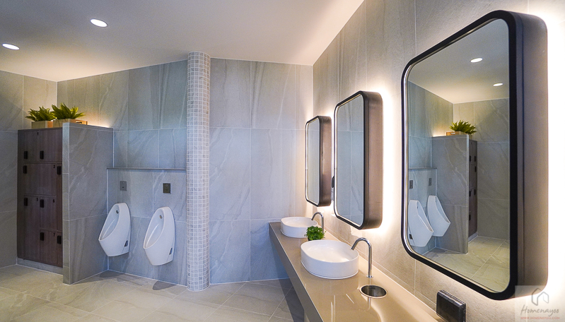 ภายในห้องน้ำแบ่งพื้นที่มากว้าง มีพื้นที่ส่วนเปียกส่วนแห้ง ระดับพื้นห้องน้ำจะเรียบเสมอกันทั้งหมด ไม่ต้องกลัวสะดุดพื้นรองรับการใช้วีลแชร์ ในห้องน้ำมีช่องแสงเป็นบานกระทุ้งเปิดระบายอากาศได้
