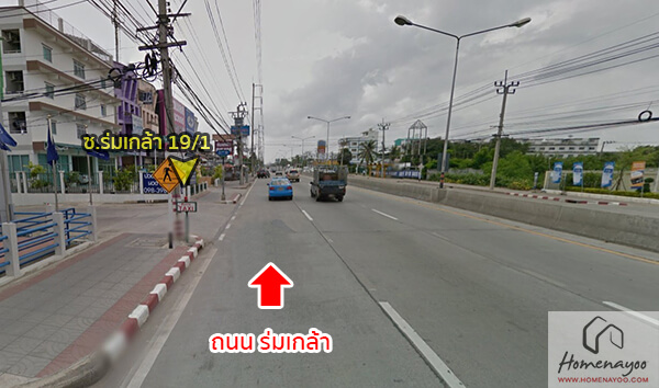 จากนั้นวิ่งตรงตาม ถนนร่มเกล้า ผ่านซ้ายมือ ซอยร่มเกล้า 28 จากตรงนี้จะมองเห็นป้ายโครงการอยู่ทางขวามือด้านหน้าครับ