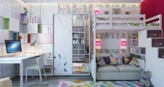 ตกแต่งห้องนอนของเด็กสาวโทนสีม่วง สไตล์โมเดิร์นโบฮีเมี่ยน จาก Olamar Interior สำหรับบ้านที่มีลูกสาวกำลังเข้าสู่ช่วงวัยรุ่น แล้วกำลังหาแบบตกแต่งห้องนอนสวย ๆ ให้อยู่ ลองดูแบบตกแต่งห้องนอนแสนสวยผลงานจาก Olamar Interior เอาไปประยุกต์ปรับแต่งห้องนอนของลูกสาวคนสวยของคุณกันนะคะ ห้องนี้เลือกใช้สีสันโทนเย็นแต่สดใสอย่างสีฟ้าและสีม่วงเป็นหลัก เลือกสรรวัสดุอย่างดีแต่มีสไตล์ที่ดูง่าย ๆ ทำความสะอาดและจัดตกแต่ง โยกย้ายได้ตามต้องการ เลือกเอารูปภาพและเฟอร์นิเจอร์ชิ้นต่าง ๆ ที่มีสีสันที่ตัดกันมาจัดแต่งเพื่อรายละเอียดของห้องมากขึ้น ส่วนของเตียงนอนเป็นเตียงเดี่ยวแต่มีไซส์ใหญ่กว่าปกติเล็กน้อย ตกแต่งด้วยพนักพิงหลังแบบบิ๊วอิน บุผ้าสีม่วงสดใส เลือกจัดวางหมอนอิงสีเข้มจัดขึ้น เพื่อให้โดดเด่นน่าสนใจ ในเวลากลางวันสามารถดัดแปลงให้เป็นพื้นที่สำหรับนั่งเล่น อ่านหนังสือ หรือเป็นที่เล่นสำหรับเพื่อน