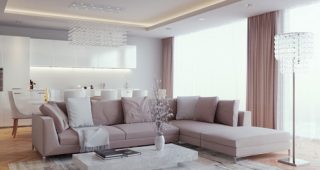 ตกแต่งห้องรับแขกสีโทนฟ้า-ขาว สดชื่นรับหน้าฝน หากถามว่าสีใดที่ให้ความรู้สึกเย็นสดชื่นมากที่สุด สีนั้นก็ต้องเป็นสีฟ้าแน่ ๆ ค่ะ แต่การนำเอาสีฟ้ามาตกแต่งบ้านสีเดี่ยว ๆ ก็อาจจะทำให้ดูโล้นและน่าเบื่อมากเกินไป คู่สีที่เข้ากันได้ดีกับสีฟ้านั่นก็คือสีขาวนั่นเอง ยิ่งหากเป็นสีขาวที่มีประกายเมทัลลิคนิด ๆ อย่างการตกแต่งห้องรับแขกห้องนี้ ก็ยิ่งสร้างความน่าสนใจทำให้การตกแต่งห้องมีดีเทลน่าอยู่มากยิ่งขึ้นไปอีกค่ะ ภายในห้องรับแขกนี้เลือกตกแต่งผนังด้วยสีฟ้าใสกับเพดานเรียบสีขาว สไตล์ของห้องเป็นการตกแต่งแบบคลาสสิก แต่นำเอาคู่สีสว่างตาอย่างสีขาวและสีฟ้ามาตกแต่งให้ดูสดชื่นปลอดโปร่งมากยิ่งขึ้น บริเวณหน้าต่างห้อยแขวนผ้าม่านสีฟ้าขาวเช่นกัน กลางห้องปูพรมสีฟ้าขาวลายกราฟฟิกตัดกับความโค้งเว้าของออตโตมานสีฟ้า (เก้าอี้แบบไม่มีเท้าแขน) มีเบาะท่อนยาวสำหรับพักท่อนแขนเล็ก ๆ ลายทางสีฟ้าขาวเมทัลลิค จัดวางโต๊ะข้างสีขาวที่มีขาโต๊ะสานกันเหมือนกระโปรงของหญิงสาว กลางห้องเลือกจัดวางด้วยโต๊ะ Coffee Table สีขาวทรงเหลี่ยมคลาสสิก อีกด้านเป็นโซฟาสีเบจขนาดสองที่นั่ง คุมโทนด้วยหมอนอิงสีฟ้าขาวอีกเช่นกัน