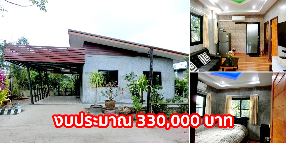 รีวิว บ้านโมเดิร์นลอฟท์ชั้นเดียว หลังคาเพิงแหงน พื้นที่ใช้สอย 54 ตร.ม. งบประมาณ 330,000 บาท บ้านชั้นเดียวแนวโมเดิร์นลอฟท์ พื้นที่ใช้สอย ประมาณ 54 ตร.ม. ขนาด 2 ห้องนอน, 1 ห้องน้ำ, 1 ห้องรับแขก พร้อมระเบียงพักผ่อน งบประมาณก่อสร้าง 330,000 บาท สวัสดีค่ะ คุณผู้อ่าน วันนี้มีรีวิวบ้านสวย ๆ มาฝากกันอีกเช่นเคย