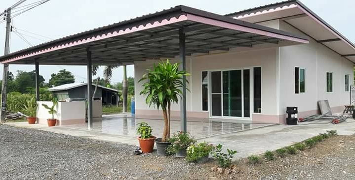 รีวิว ปลูกบ้านชั้นเดียว แบบพอเพียง พื้นที่ใช้สอย ประมาณ 64 ตร.ม. งบประมาณรวม 500,000 บาท สวัสดีค่ะ คุณผู้อ่านที่น่ารัก วันนี้เรามีรีวิวการปลูกสร้างบ้านสวยๆ มาฝากกัน สำหรับหลังนี้เป็นบ้านของคุณ เอก ป๋าคิวซัง ตัวบ้านเป็นบ้านชั้นเดียว หลังคาเพิงแหงน พื้นที่ใช้สอย ประมาณ 64 ตร.ม. ขนาด 2 ห้องนอน 1 ห้องน้ำ 1 ห้องโถง 1