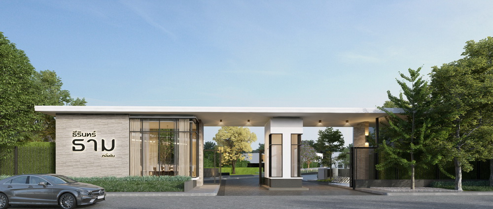 ภาพและบรรยากาศจำลองซุ้มประตูโครงการ ธีรินทร์ ธาม ตลิ่งชัน พร้อมระบบรักษาความปลอดภัย 3 ชั้น เข้า-ออกผ่านระบบอัตโนมัติ, กล้อง CCTV และ มีเจ้าหน้าที่ดูแลรักษาความปลอดภัยตลอด 24 ชม.