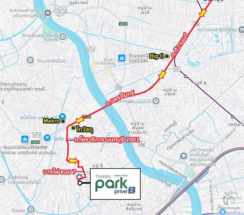 จากถนนนครอินทร์เข้าถนนโยธาธิการ นนทบุรี 2001 ไปประมาณ 2.1 กม.* จะถึงตัวโครงการพอดีค่ะ