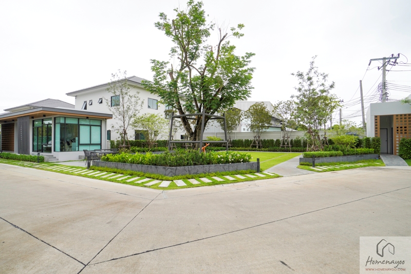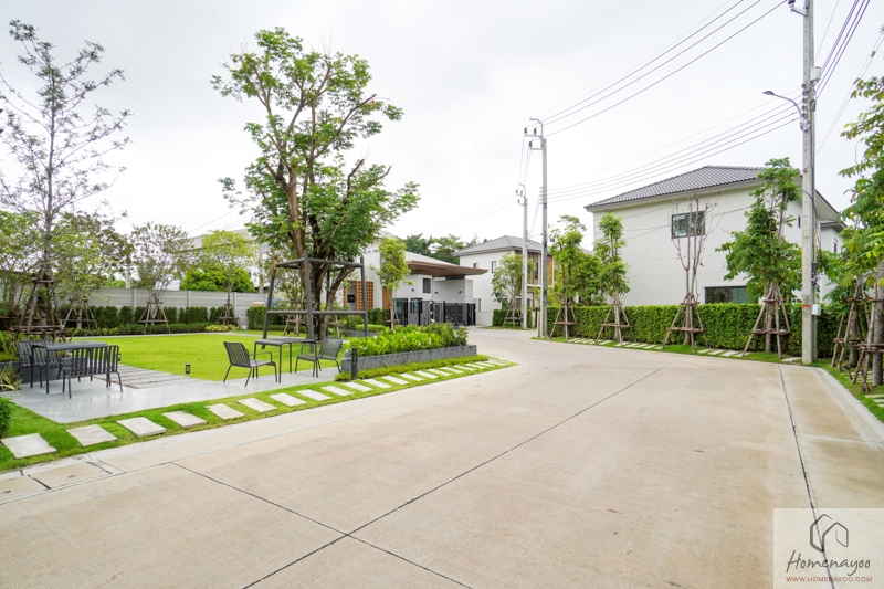 ตรงเข้ามาภายในโครงการจะเจอถนนหลักตัดไปตามขวางผ่านหน้าบ้านทุกหลังโดยไม่ต้องเข้าซอย โดยจะมีต้นไม้ใหญ่ปลูกเอาไว้ตลอดแนวถนนและตามบริเวณพื้นที่หน้าบ้านทุกหลัง ทำให้ทั้งโครงการดูร่มรื่นและน่าอยู่มาก ๆ