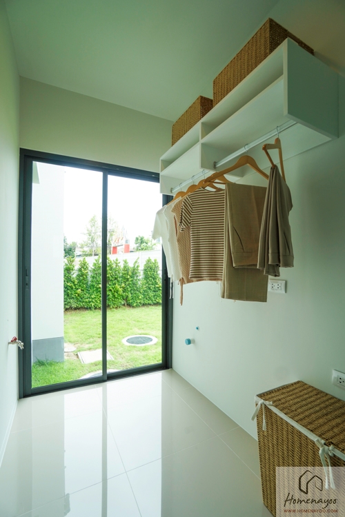 และอีกฝั่งหนึ่งทำเป็นห้องซักรีด วางเครื่องซักผ้า-อบผ้า และทำเป็นมุมรีดผ้าพร้อมราวแขวนได้