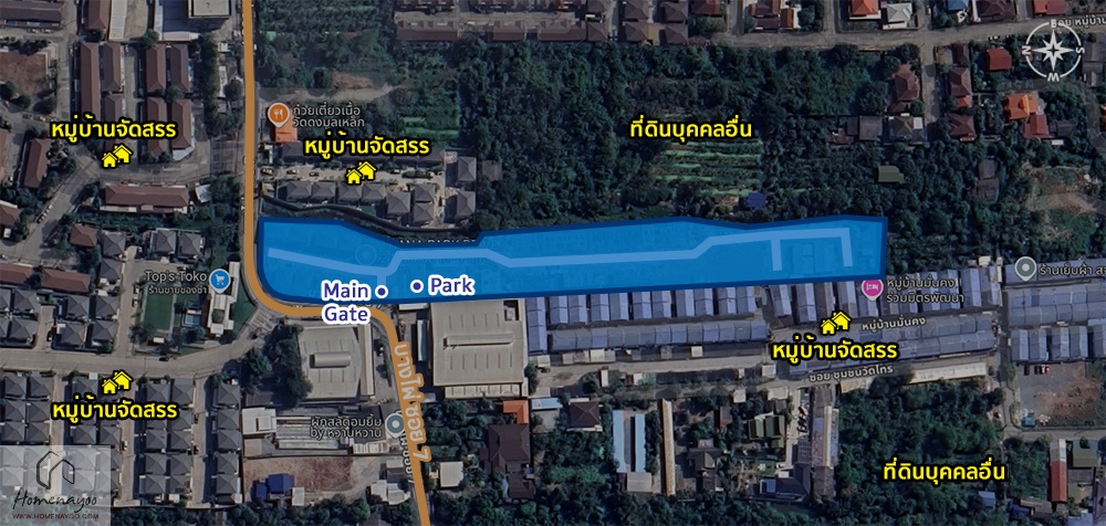 ในซอยนี้บรรยากาศมีความเป็นส่วนตัวมาก ๆ โดยรอบเป็นหมู่บ้านจัดสรรในเครือของธนาสิริเอง ให้เราเลี้ยวซ้ายไปตามทาง