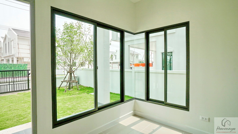 โดย Spec ของหน้าต่าง-ประตูที่เป็นบานเลื่อนที่โครงการใหม่มา เป็นเกรดพรีเมียมเลยค่ะ ลูกฟักจะใช้เป็นกระจกเขียวตัดแสง ที่ช่วยสะท้อนความร้อนได้ดี ส่วนบานกรอบจะเป็นอะลูมิเนียม Powder Coat สีเทาทั้งหมด ได้ทั้งความแข็งแรง ทนทาน และยังช่วยกันเสียงรบกวน กันฝุ่น กันแมลงได้เป็นอย่างดี