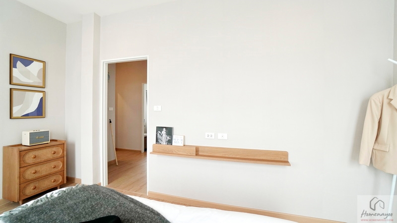 ผนังเปล่าข้างประตูห้องนอน ก่อนถึง Walk-in Closet สามารถ Built-in หรือวางชั้นวางของ-ตู้เก็บของแนวสูงเข้าไปได้